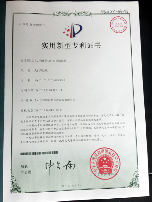 恭賀我司獲得國家專利局審批的實用新型專利產(chǎn)品證書。